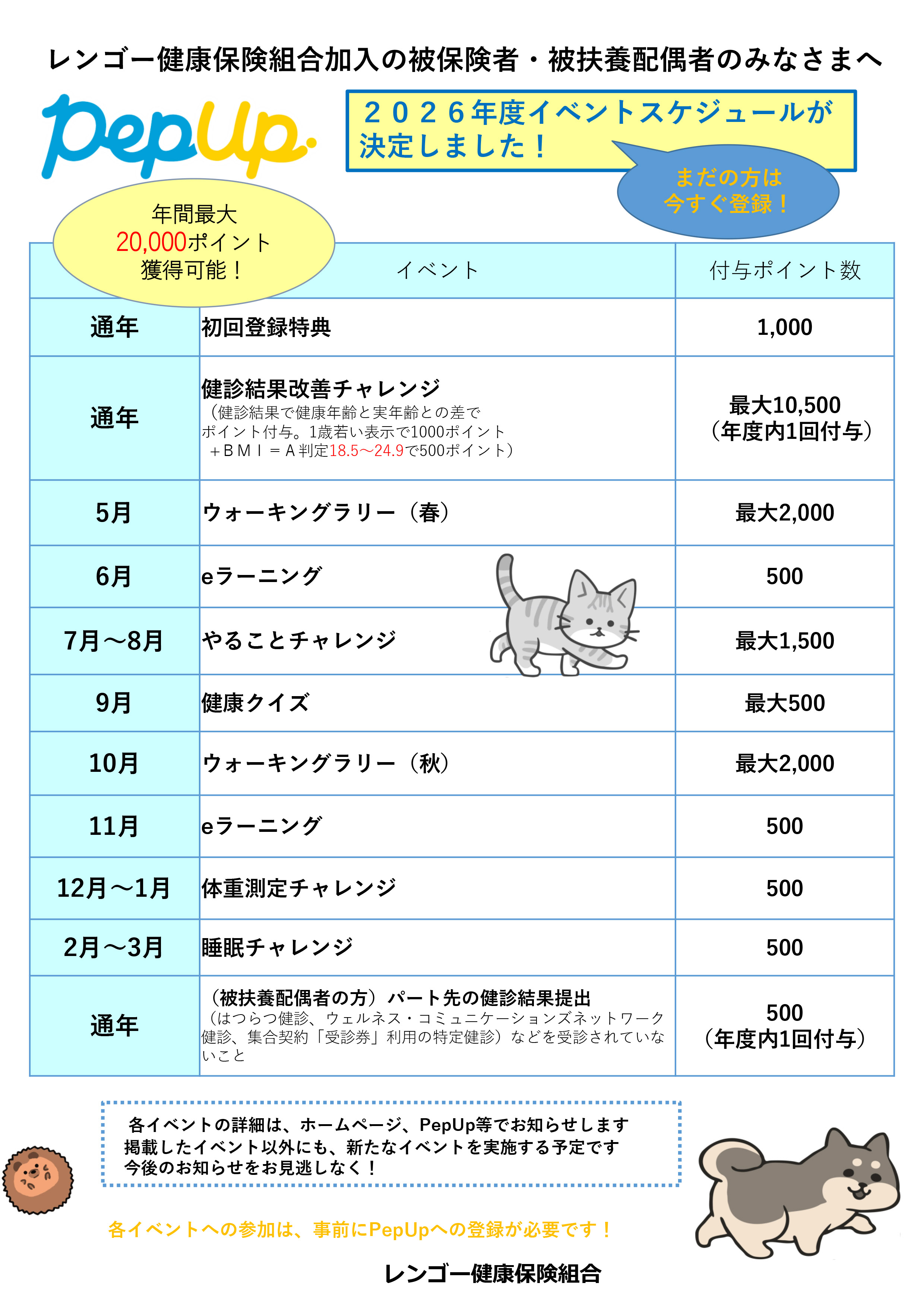 ふれんどウォークのエントリーは、初回のみ必要となり、2回目以降不要です。 - 年間スケジュール